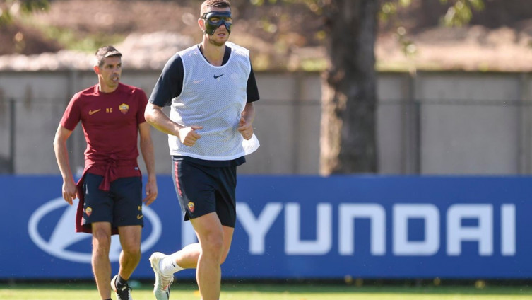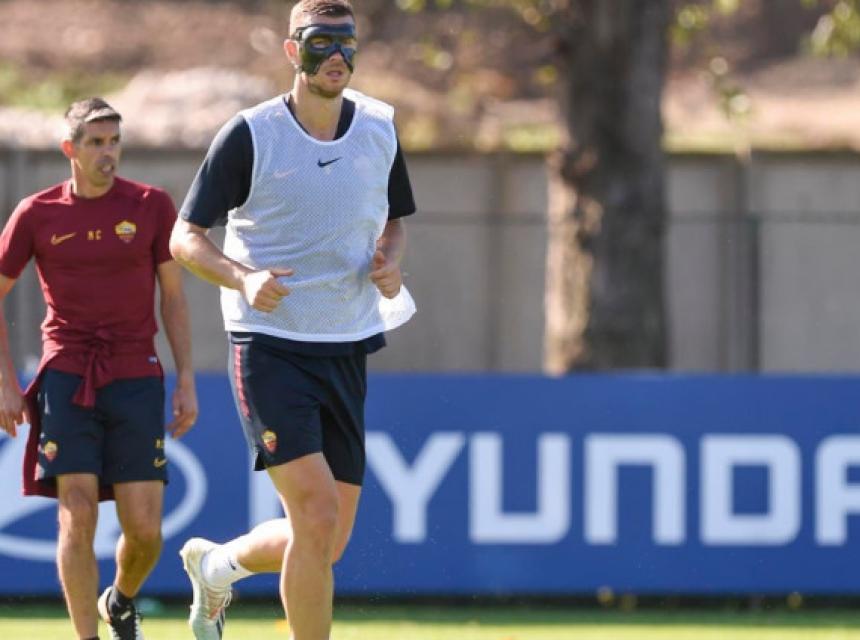 Dok traje oporavak, Džeko vrijedno trenira sa specijalnom maskom na licu, a fotografija je objavljena na zvaničnom Twitter nalogu tima s Olimpika.