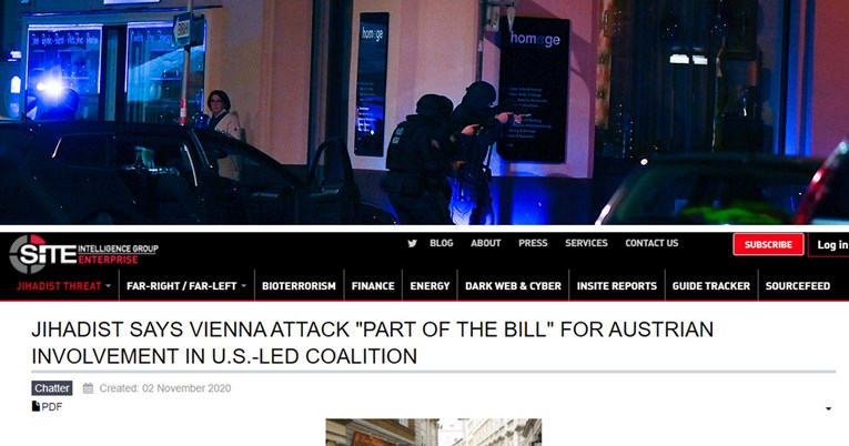 NA STRANICI SITE Intelligence Group, specijaliziranoj za nadzor islamističkih internetskih stranica, večeras je objavljena navodna izjava džihadista koji je ustvrdio da je napad u Beču kazna za austrijsko sudjelovanje u koaliciji predvođenoj od strane Amerikanaca protiv ISILA.