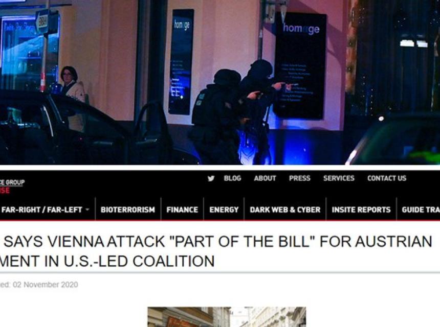 OE24.at navodi kako SITE Intelligence Group prenosi tek tu jednu rečenicu te da se uz to nalazi slika centra Beča.