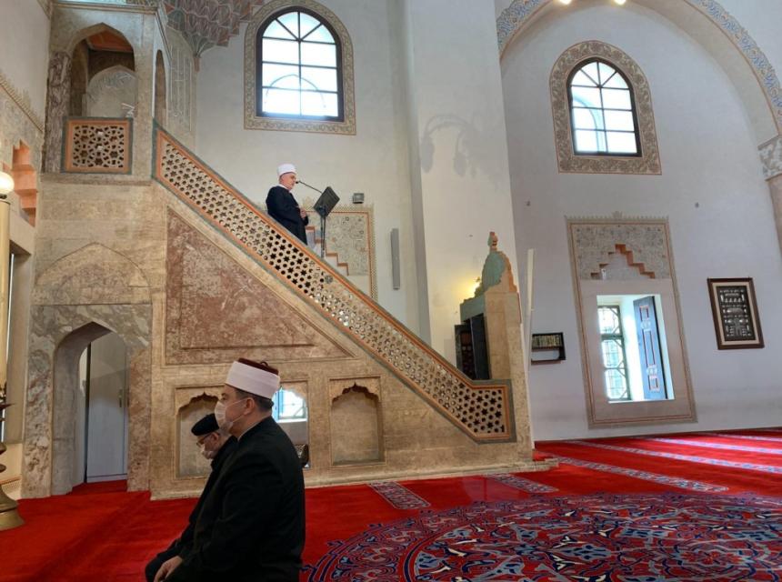 Na temelju zahtjeva muftije sarajevskog i odobrenja reisu-l-uleme u okolnostima pogoršanja epidemiološke situacije prouzrokovane virusom COVID -19, Uprava za vjerske poslove donijela je odluku da će se džuma-namaz od sljedećeg petka u džamijama na području Medžlisa Islamske zajednice Sarajevo (Kanton Sarajevo) organizirati uz prisustvo imama i članova džematskog odbora, a hatibi će upotpuniti propis hutbe i poruku na bosanskom jeziku do 5 minuta.