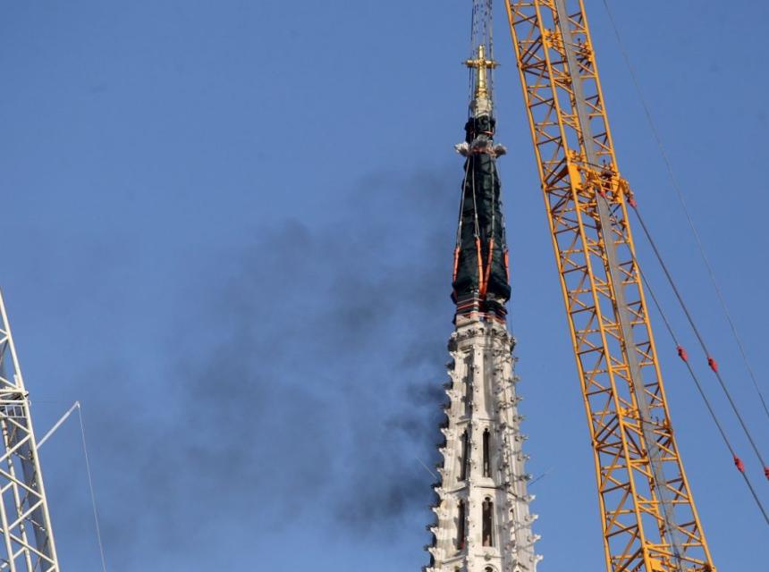 Nakon kontrolirane eksplozije koja je izvedena na vrhu sjevernog tornja Zagrebačke katedrale uz pomoć Hrvatske vojske, velikom dizalicom vrh sa pozlaćenim križom na vrhu spušten je u dvorište Zagrebačke katedrale uz pomoć alpinista koji su privezali sajle potrebne za sigurno skidanje gotovo desetmetarskog vrha.