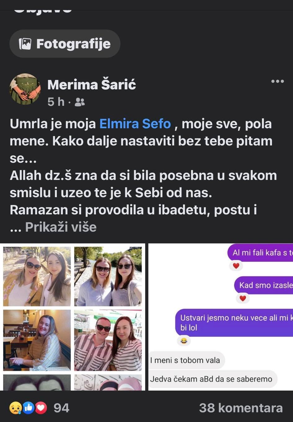 Umrla je moja Elmira Sefo , moje sve, pola mene. Kako dalje nastaviti bez tebe pitam se…