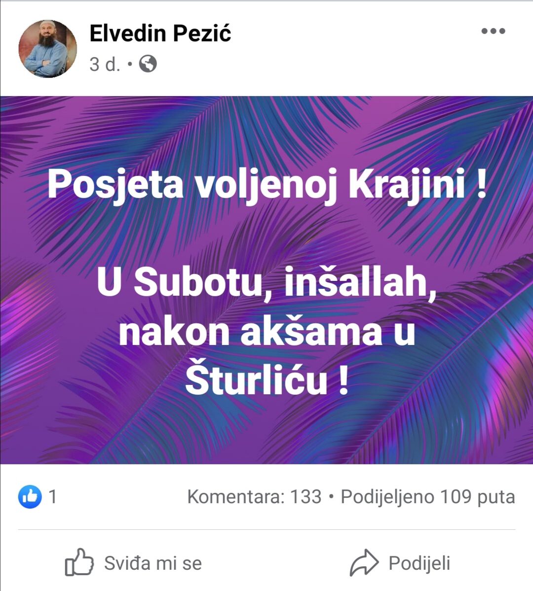 U subotu, nakon akšam namaza, su mještani naselja Šturlić mogli prisustvovati predavanju Islamskog predavača Elvedina Pezića.