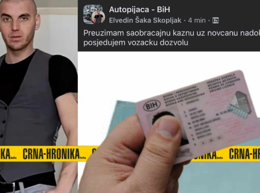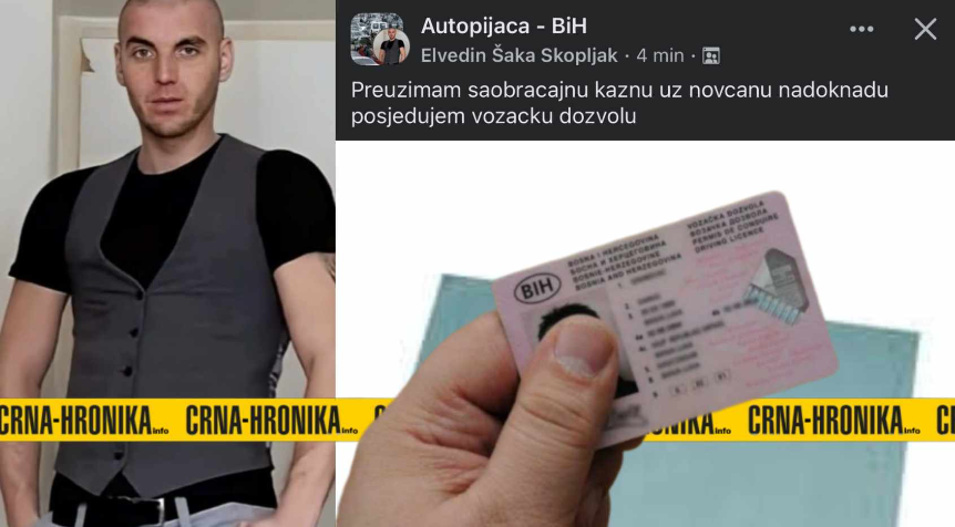 Na Facebook stranici “Autopijaca BiH, Sarajevski mali oglasi,” Skopljak je objavio oglas u kojem navodi da posjeduje vozačku dozvolu i spreman je preuzeti kazne drugih vozača.