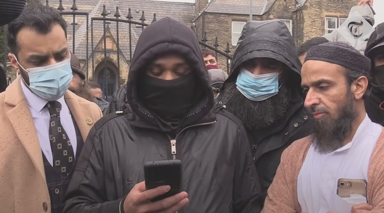 Njegova je izjava uslijedila nakon što su se deseci prosvjednika okupili pred vratima gimnazije Batley u četvrtak ujutro, prisiljavajući školu da učenicima savjetuje da ostanu kod kuće dok policajci čuvaju školu. Navodno je 29-godišnji učitelj religije pokazala učenicima spornu sliku tijekom nastave u ponedjeljak. U četvrtak navečer morao je potražiti utočište nakon što je policija izrazila zabrinutost za njegovu sigurnost s obzirom na to da se njegovo ime pojavilo na internetu.