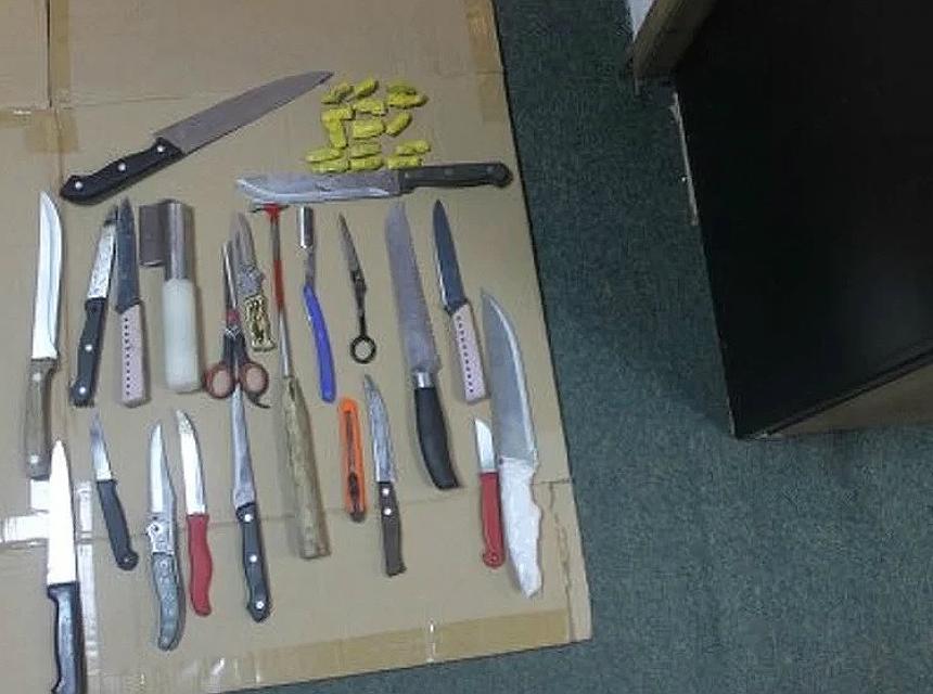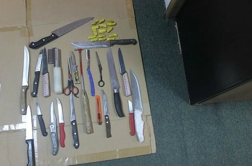 Ističu da su u toku pretresa izuzeli više komada hladnog oružja, boksera, zeljaste materije koja svojim izgledom asocira na opojnu drogu “Cannabis sativa L” kao i drugih predmeta.