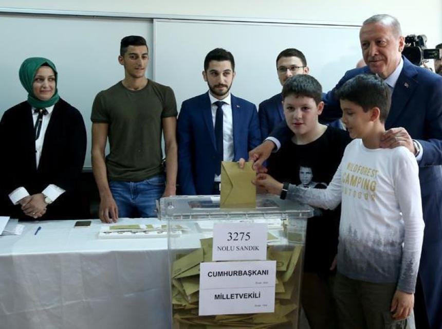 Aktuelni turski predsjednik, lider vladajuće Stranke pravde i razvoja (AK Parti) i predsjednički kandidat te političke opcije Erodgan glasao je na biralištu u istanbulskom distriktu Uskudar.
