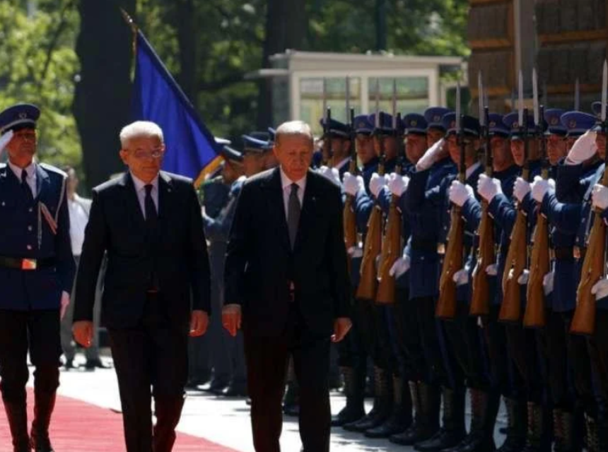 Erdogan je svečano dočekan na ceremoniji uz vojne počasti ispred zgrade Predsjedništva BiH, nakon čega će uslijediti susret s predsjedavajućim i članovima Predsjedništva BiH te sastanak zvaničnih delegacija BiH i Republike Turske.