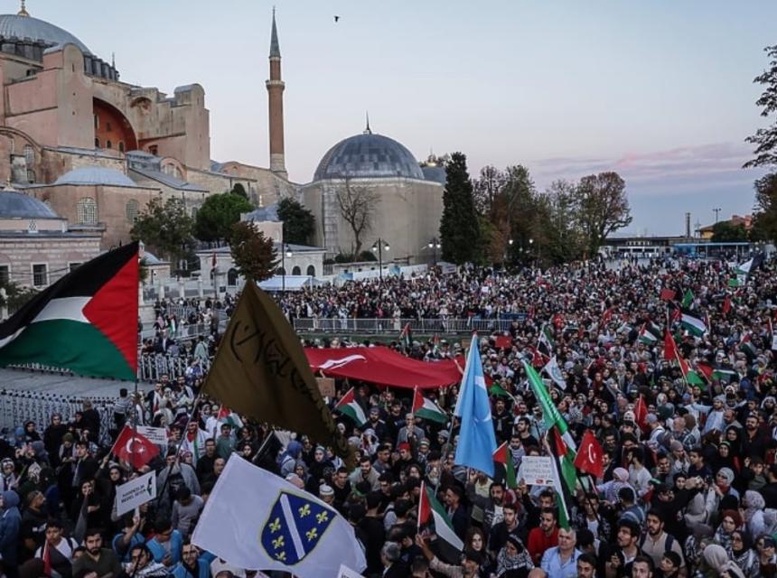 "Želio bih naglasiti da je najvažniji razlog za ove pojačane napade odlučnost Turske da zaštiti svoja prava i interese i njen čestit stav prema palestinskoj stvari, bez ikakvih ustupaka.U slučaju divljanja u Gazi gdje je masakrirano 23.000 nevinih ljudi, uglavnom djece i žena, naša država je stala na stranu potlačenih Palestinaca i neustrašivo branila pravu stvar i istinu. Dapače, hrabar stav naše zemlje ima udjela u rastućoj međunarodnoj reakciji protiv politike nasilja izraelske administracije", rekao je Erdoğan.