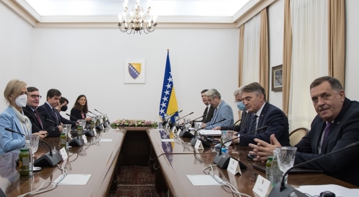 Na pitanje o eventualnim sankcijama Evropske unije prema pojedincima u BiH, direktorica pri Evropskoj službi za vanjske poslove (EEAS) Angelina Eichhorst kazala je da “radimo na procesu gdje bi se mirnim sredstvima došlo do rješenja, kroz dijalog, pregovore, sjedite za stolom i prevaziđete razlike”.
