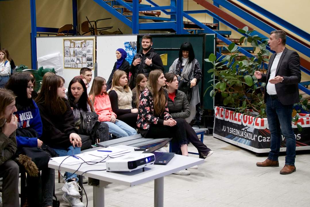 EU Info Centar u BiH posjetio je jučer "Prvu srednju školu" u Cazinu. Sa učenicima škole razgovarali su o nastanku Evropske unije i tome šta EU radi za mlade.