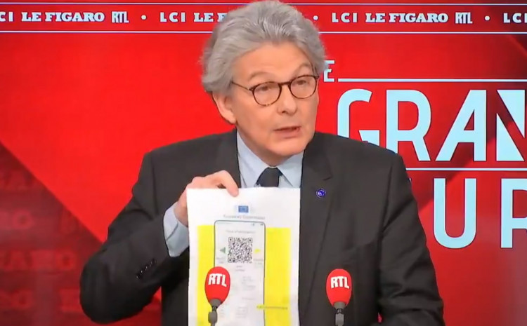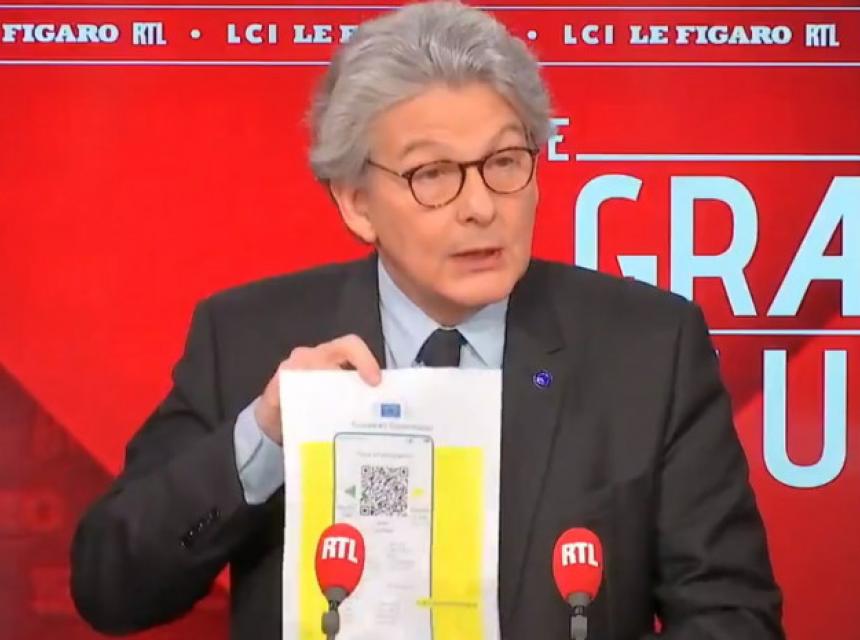Evropski komesar za jedinstveno tržište Tijeri Breton (Thierry Breton) predstavio je danas u intervjuu za nekoliko francuskih medija "evropski zdravstveni certifikat" o vakcinaciji protiv koronavirusa koji će od 15. juna biti dostupan građanima, ali je dodao da neće biti obavezan.