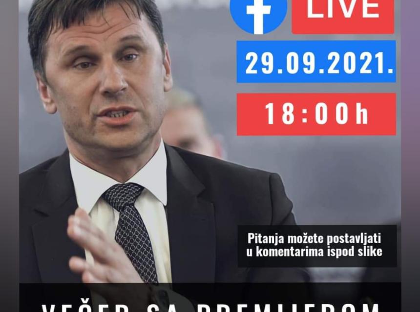 Premijer Federacije Bosne i Hercegovine, Fadil Novalić, održati će na svojoj Facebook stranici svoje drugo live obraćanje pod nazivom "Večer sa premijerom".