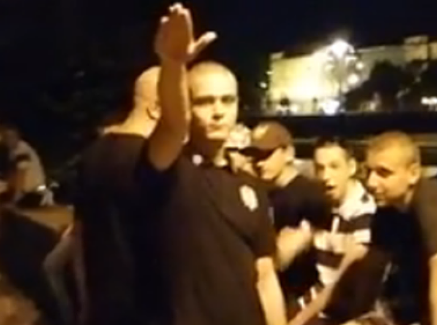 Antifašiste je zaskočilo dvadesetak skinhedsa koristeći fašistički pozdrav „Zieg heil“. Usput su dobacivali ljudima u šetnji parole kao što su „Srbija Srbima“ i „Živeo Milan Nedić“.