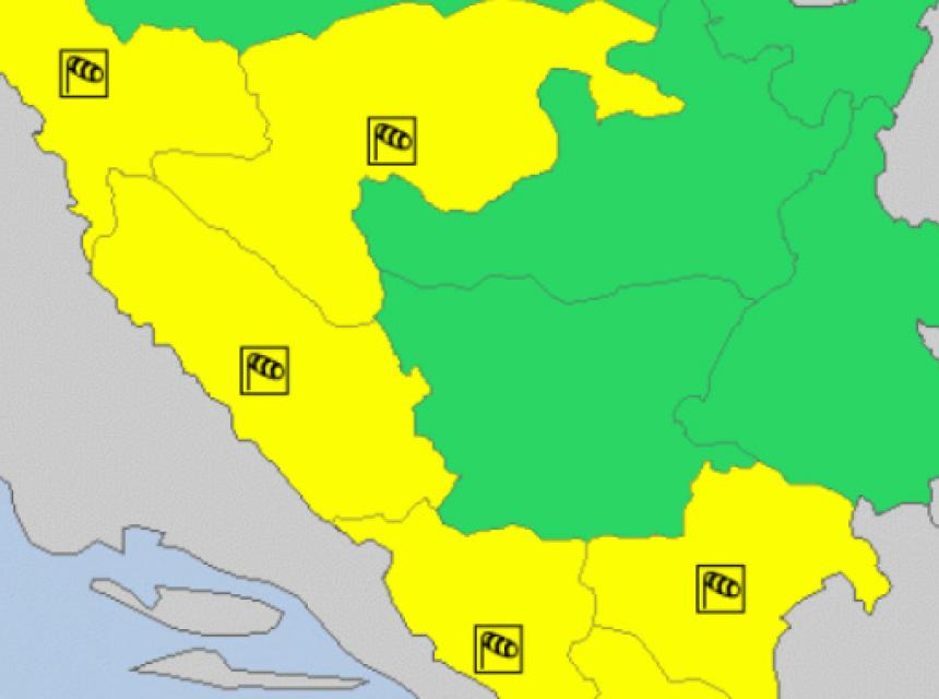 Federalni hidrometeorološki zavod BiH objavio je žuti meteoalarm za gradove Banja Luka, Bihać, Foča, Livno, Mostar i Trebinje.
