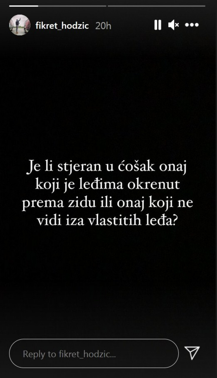 - Je li stjeran u ćošak onaj koji je leđima okrenut prema zidu ili onaj koji ne vidi iza vlastitih leđa? - stoji u Hodžićevoj objavi na Instagramu.