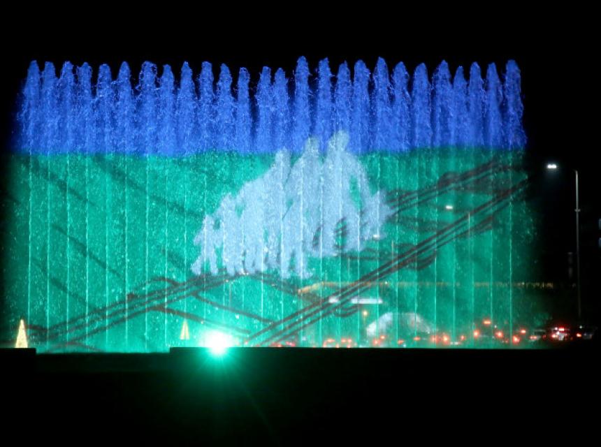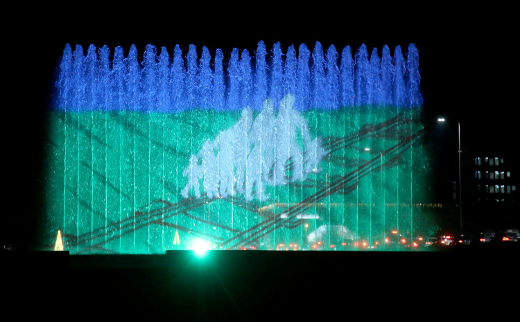 Na fontanama je projiciran element iz stripa "Madina” autorice Ene Jurov koji prikazuje čin protjerivanja Madinine obitelji koja se po pruzi vraća u Srbiju, nakon čega je naišao vlak i na licu mjesta usmrtio 6-godišnju djevojčicu.