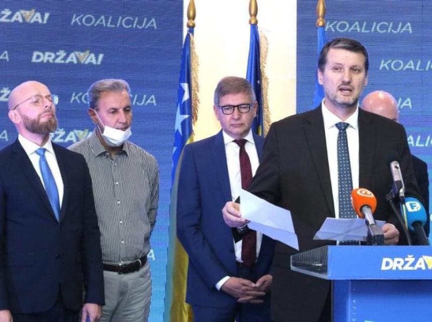 ''Koalicija Država je novost u političkom životu Bosne i Hercegovine. Ovo je savez principa, vrijednosti i našeg cilja kojeg ne krijemo – to je funkcionalna i efikasna država. Mi ovom vrijednosnom i principijelnom koalicijom jasno poručujemo da imamo dogovor o zajedničkom nastupu na izborima, da ćemo imati zajedničke liste, da će ova Koalicija biti nosilac aktivnosti na okupljanju zdravih političkih i građanskih snaga, te da ćemo učiniti sve kako bi pokazali da politika može biti drugačija i inkluzivna za sve one kojima je država na prvom mjestu. Ovo je i unutrašnji odgovor na destruktivnu politiku Milorada Dodika, Dragana Čovića i Bakira Izetbegovića, kao i na sve izazove koje imamo u regiji, opštem zastoju države i lošem stanju na svim društvenim poljima'', kazao je Senad Šepić koji je najavio da će koalicija Država! imati najmanje jednog kandidata za člana Predsjedništva BiH, a to je Mirsad Hadžikadić.