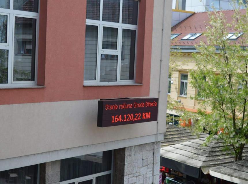 Na displeju koji se nalazi u samom centru grada, svakodnevno će se ažurirati informacije o stanju budžeta, mjesečnom stanju duga gradske uprave, a javnosti će biti dostupne informacije o plaćenim obavezama grada Bihaća tokom radne sedmice.