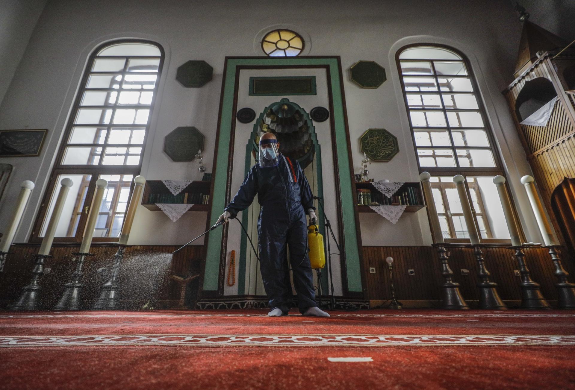 Povodom sutrašnjeg muslimanskog praznika Kurban-bajrama, a s ciljem sprečavanja širenja novog tipa koronavirusa, u brojnim džamijama u BiH izvršena je dezinfekcija unutrašnjeg molitvenog i vansjskog prostora džamije, javlja Anadolu Agency .