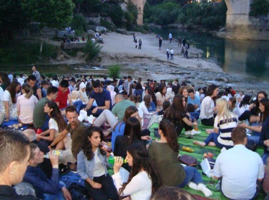 U prekrasnom ambijentu mostarske starogradske jezgre, platou ispod Starog mosta, u organizaciji Info-servisa za mlade Medžlisa Islamske zajednice (MIZ) Mostar upriličen je tradicionalni omladinski iftar.