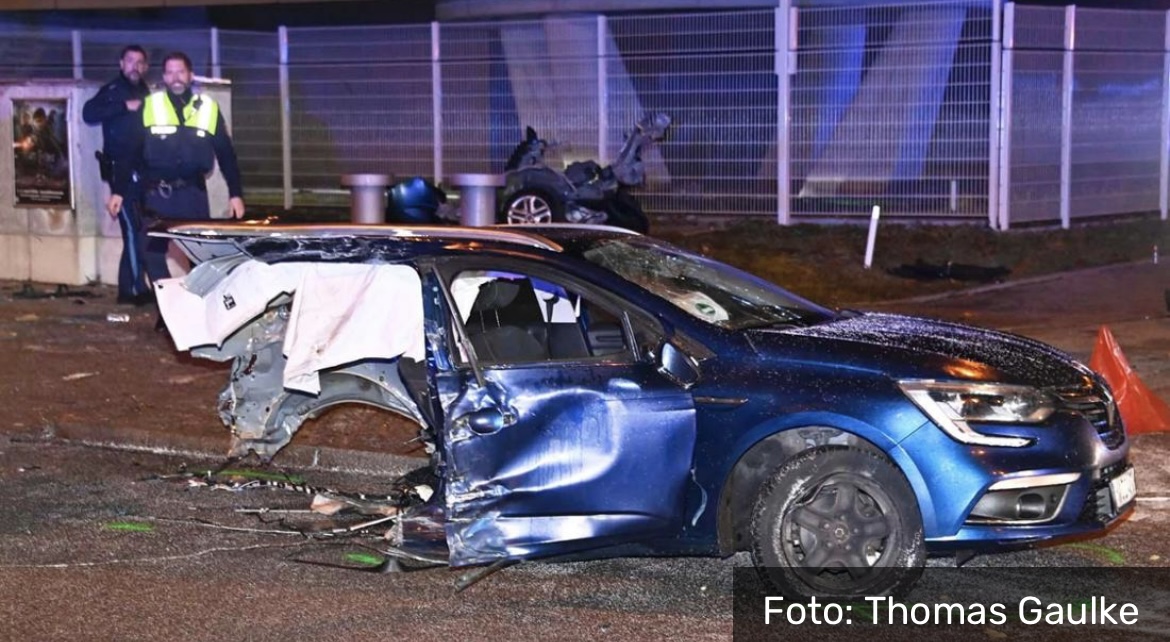 Teška saobraćajna nesreća dogodila se u subotu navečer u Münchenu, kada je 19-godišnji vozač Porschea prošao kroz crveno svjetlo velikom brzinom i udario u Renault koji je skretao na raskrsnici.