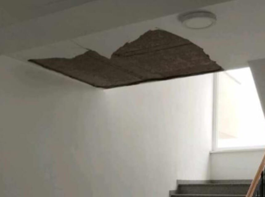 FOTO Urušio se plafon u stubištu nedavno sagrađene zgrade na Ćupriji u Cazinu