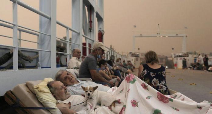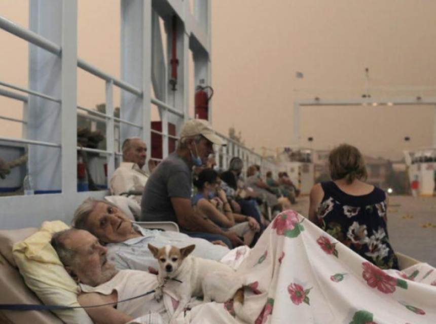 Fotografija sa trajekta na kojoj se vidi kako supružnici leže, umorni i uplašeni, opisuje svu dramu sa kojom se hiljade ljudi suočavaju u proteklim danima u različitim dijelovima Grčke, prenose grčke novine Proto Thema.