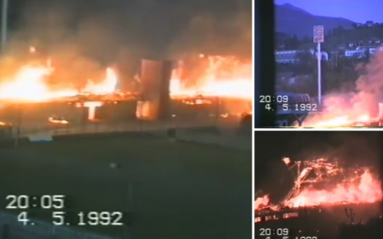 Tokom agresije na Bosnu i Hercegovinu, Stadion Grbavica ili popularno zvana Dolina ćupova je postala prva borbena linija, a zapadna tribina, prenesena sa stadiona 6. april sa Marijin Dvora prilikom same izgradnje stadiona, zapaljena je, dok je dio stadiona miniran. Sa tribinom zajedno je izgorilo i nestalo 316 pehara.