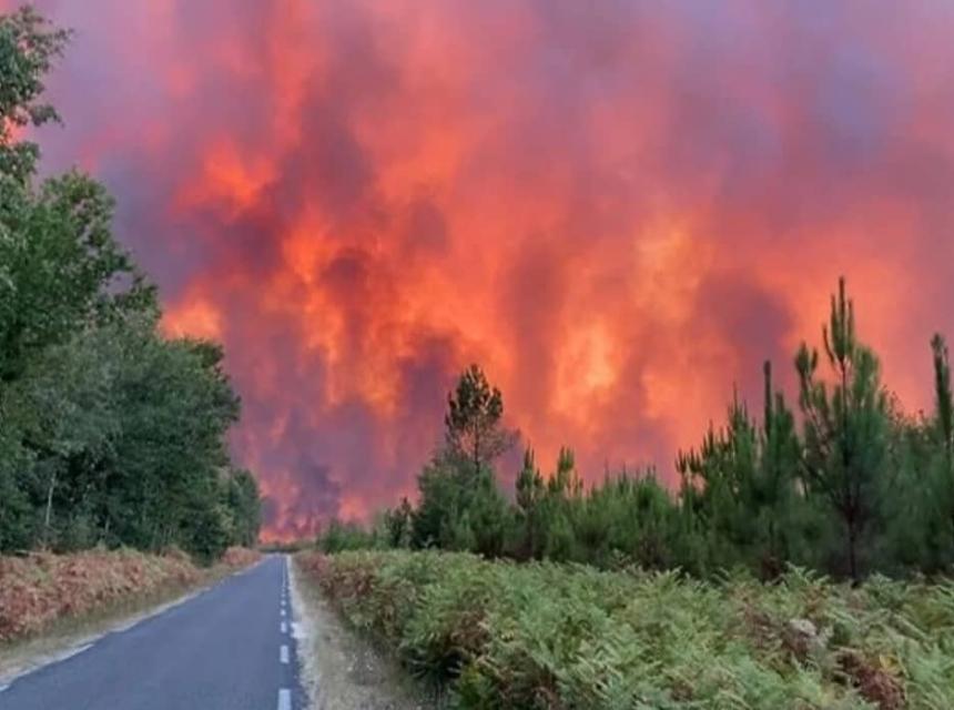 Francuska se bori s "monstruoznim" šumskim požarom u regiji Landiras u blizini vinogradarske regije Bordeauxa, saopćio je Gregory Allione iz francuske vatrogasne službe FNSPF u četvrtak.
