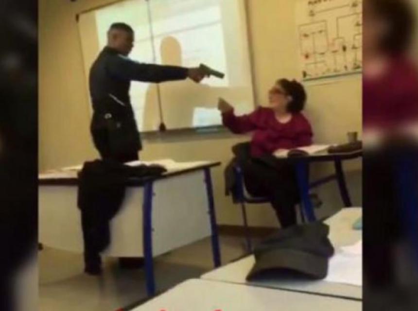 U videu koji je objavljen na društvenim mrežama može se vidjeti kako dječak upire pištolj prema svojoj nastavnici i urla na nju da u imenik upiše da je došao na sat. Nastavnica se međutim na njega ne obazrela te je nastavila raditi na svom računaru i obraćati se razredu.