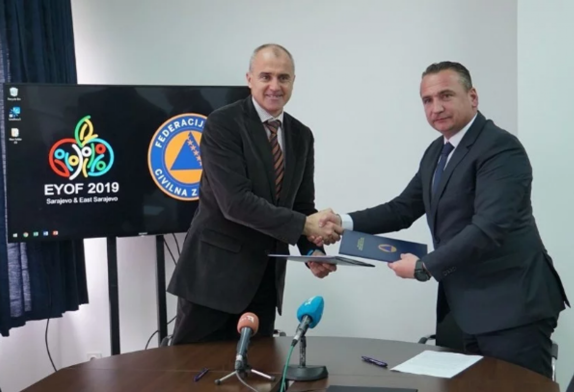 Direktor Federalne uprave civilne zaštite (FUCZ) Fahrudin Solak i direktor privrednog društva “EYOF 2019” d.o.o. Senahid Godinjak potpisali su danas u Sarajevu Sporazum o stručnoj saradnji i partnerstvu.