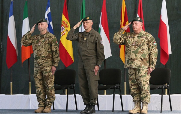 Ceremonija primopredaje dužnosti načelnika Štaba EUFOR-a između brigadnog generala Jožefa Spišjaka (Jozsef Szpisjak) i brigadnog generala Gabora Horvata (Horvath) upriličena je danas u kampu Butmir u Sarajevu.