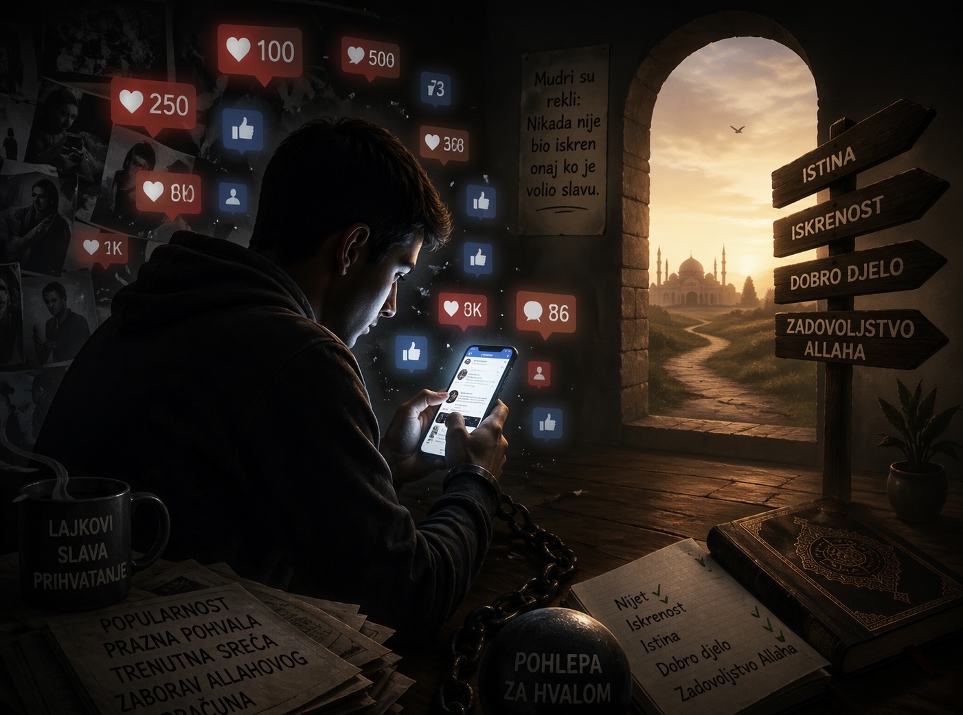 U konačnici: pohlepa za hvalom na objavama nije prolazno individualno ponašanje, nego simptom dublje bolesti: gubitka unutrašnjeg kompasa i zamjene Allahovog zadovoljstva zadovoljstvom publike.