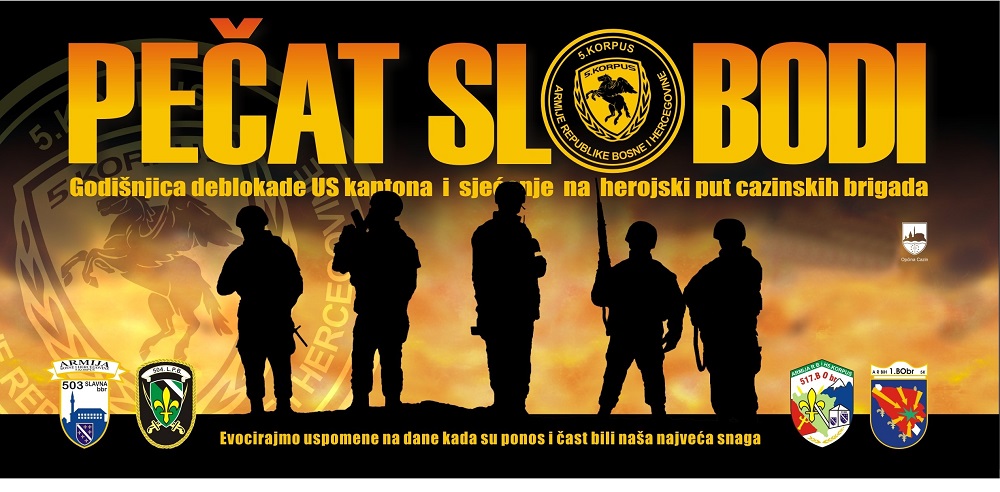 Prošle su 23 godine od ovog značajnog datuma koji se obilježava i kao Dan Grada Cazina. Manifestacija „Pečat slobodi“ uvod je u vrlo bogat program koji će iste večeri uslijediti u centru Grada Cazina na kojem se očekuje veliki broj Cazinjana, ali i gostiju iz svih dijelova Unsko- sanskog kantona i šire.