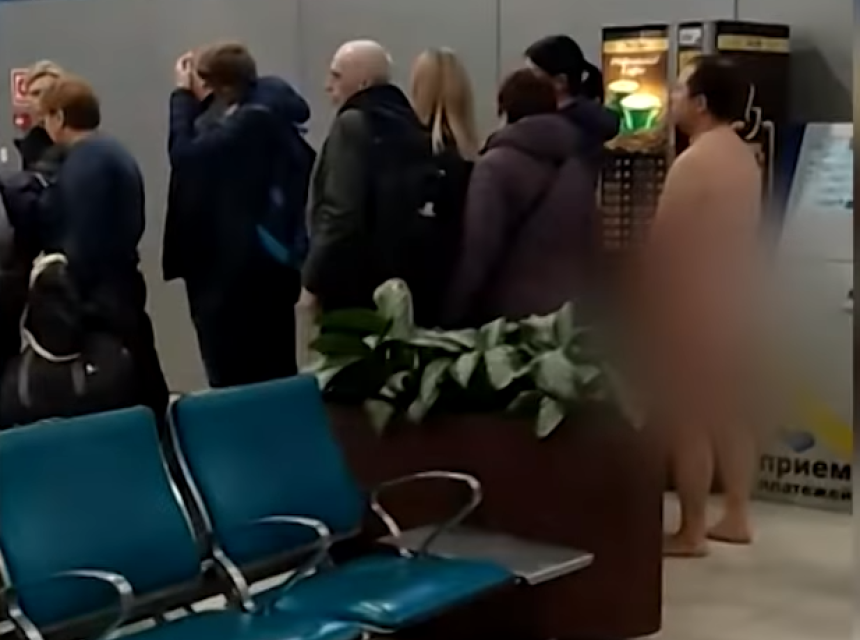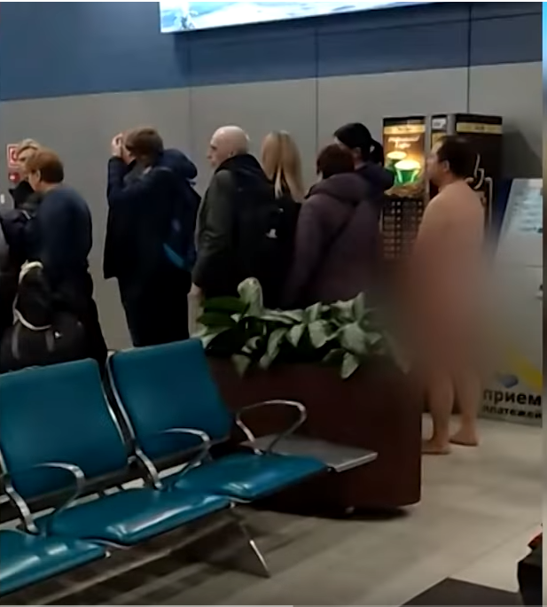 Najprije se činilo da je to jedna tipična subota na moskovskom aerodromu Domodedovo. Putnici su se postrojavali kako bi se ukrcali na avion za grad Simferopol na Krimu. Međutim, jedan čovjek se jasno izdvajao od drugih. Naime, snimci sa sigurnosne kamere pokazuju da je jedan muškarac u redu čekao potpuno go.