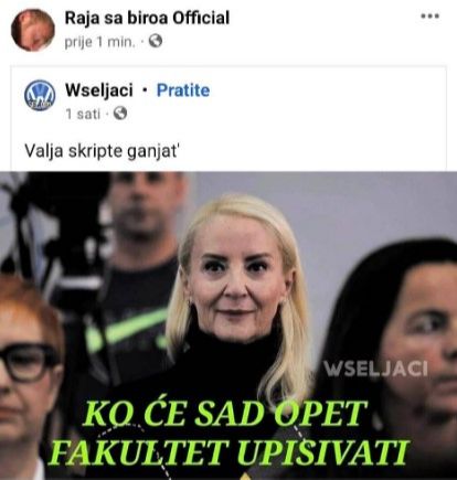 - Ko će sad opet fakultet upisivati – piše na fotografiji na kojoj je prikazana Sebija.