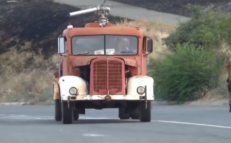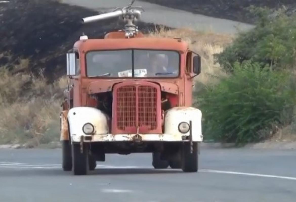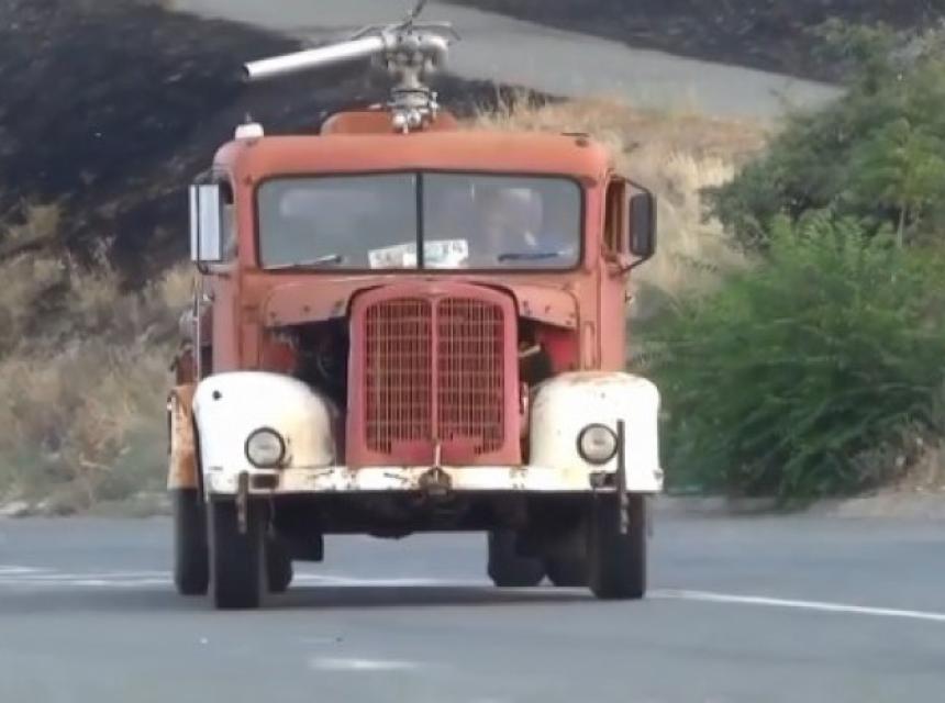 Na snimku se vidi staro teretno vozilo ili bolje reći krš od cisterne s kojim tamošnji vatrogasci idu na intervencije.