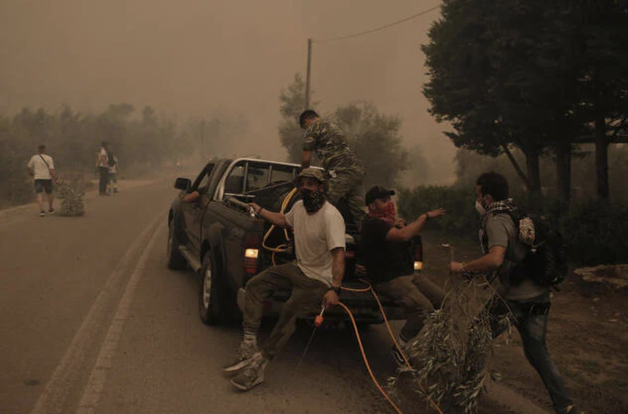 Požari na ostrvu Evija su najopasniji, a na desetine manjih požara trenutno gore širom Grčke. Lokalno stanovništvo i turisti su evakuisani trajektima s ovog ostrva koje je drugo po veličini u zemlji. Kuće i dalekovodi su u potpunosti uništeni.