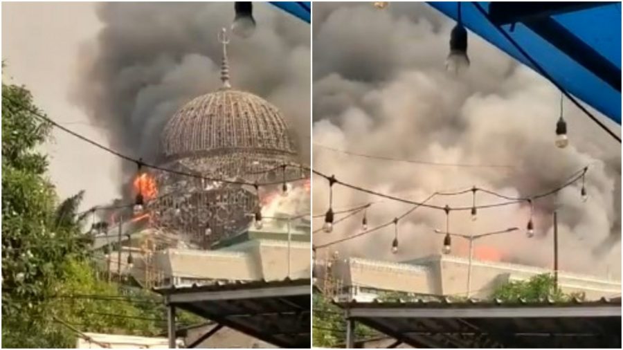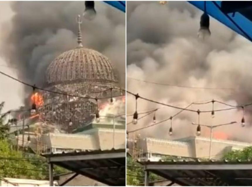 Islamska organizacija objavila je snimak na Tviteru uz natpis: „Kupola džamije Islamskog centra Koja u Džakarti gori“.
