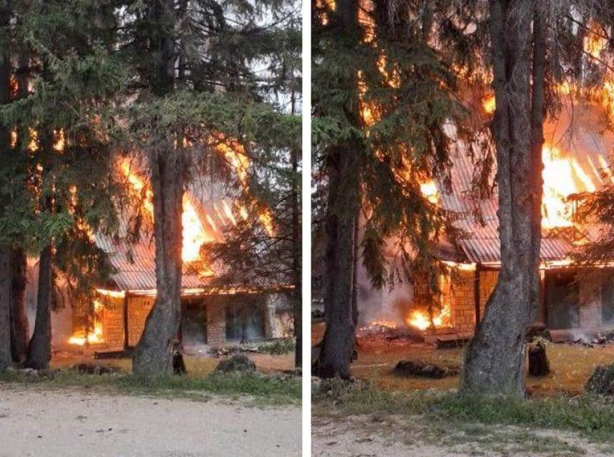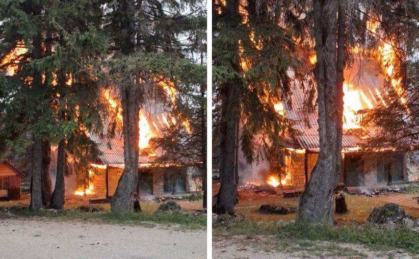 Požar je zahvatio čitavu vikendicu, a na teren su odmah izašle sve dostupne vatrogasne jedinice koje se bore sa vatrenom stihijom.