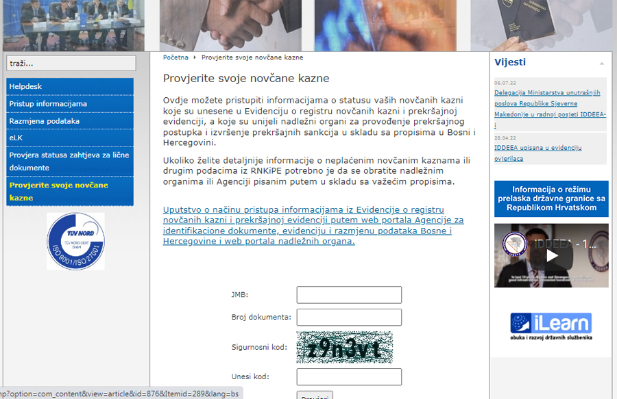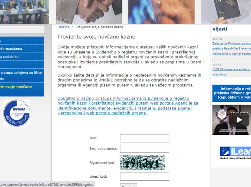 Ukoliko građani žele detaljnije informacije o neplaćenim novčanim kaznama ili drugim podacima iz registra novčanih kazni i prekršajnoj evidenciji potrebno je da se obrate nadležnim organima ili Agenciji pisanim putem u skladu sa važećim propisima. Na web-stranici se nalazi i Uputstvo o načinu pristupa informacijama iz Evidencije o registru novčanih kazni i prekršajnoj evidenciji putem web portala Agencije za identifikacione dokumente, evidenciju i razmjenu podataka Bosne i Hercegovine i web portala nadležnih organa.