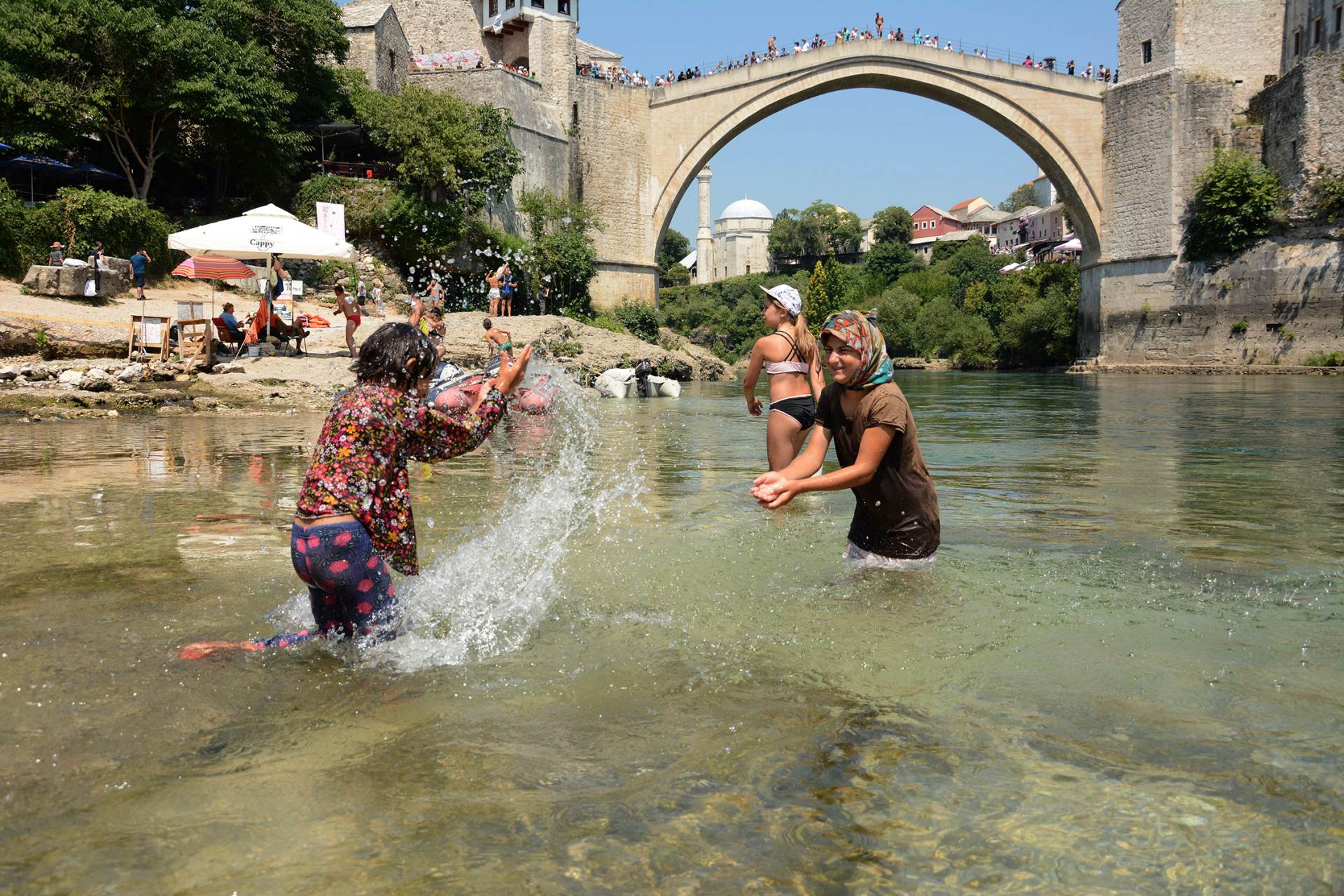 Odmah po izlasku iz mostarske rijeke kupačima je potrebno dodatno osvježenje, jer je nemoguće izdržati nezaštićen pod zrakama uzavrelog sunca.