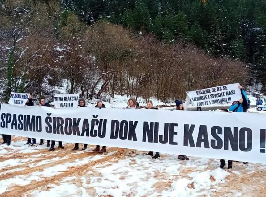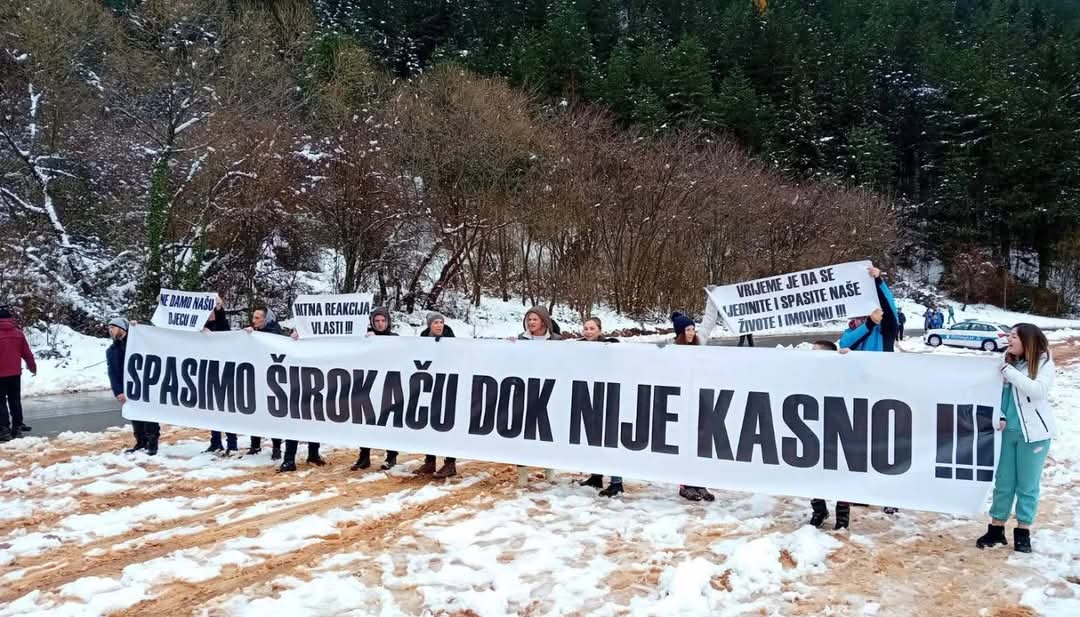 U transparentima koje su ponijeli pisalo je “Spasimo Širokaču dok nije kasno”, “Hitna reakcija vlasti”, “Ne damo našu djecu”, “Vrijeme je da se ujedinite i spasite naše živote i imovinu”.
