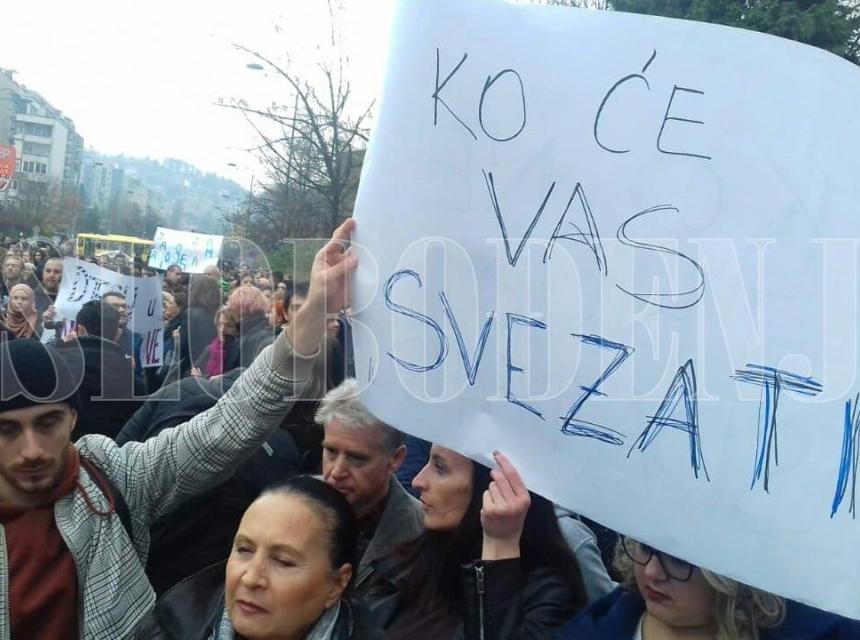 Ispred zgrade Vlade FBiH u toku je protest građana zbog tretmana djece u Zavodu Pazarić. Građani ističu da su i dalje u šoku zbog onog što su jučer vidjeli.