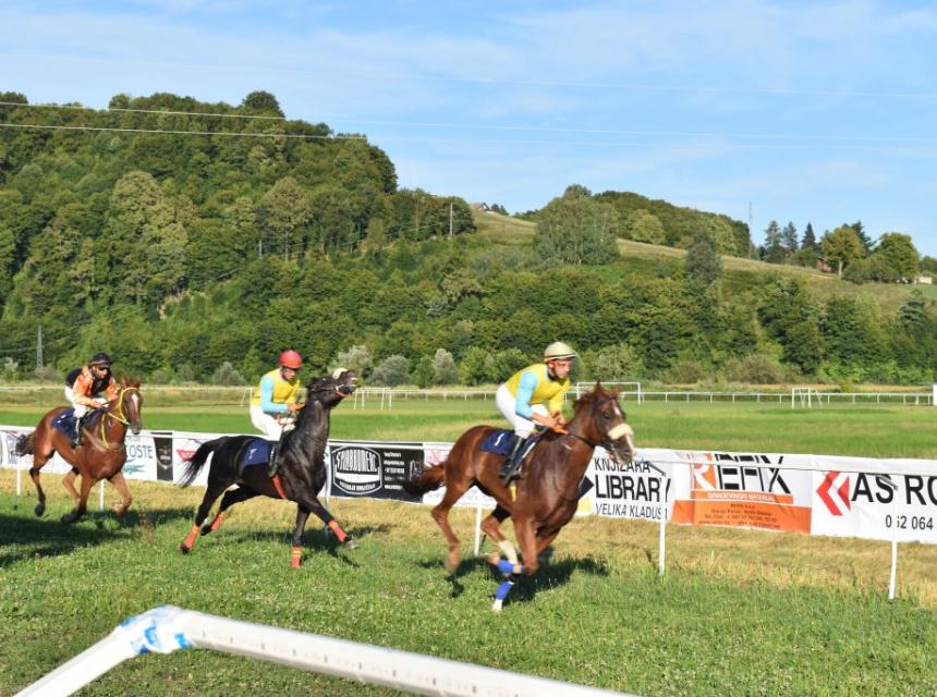 Pobjedu u uzbudljivoj glavnoj utrci “TRKA GRADA VELIKA KLADUŠA”, dužine 2.200 metara, zabilježilo je grlo “Thunder Rock” čiji je vlasnik Ibro Okčić iz Sanskog Mosta. Drugo mjesto pripalo je grlu “Zwarovski”, članu KK “Krajišnik”, dok je treće mjesto zauzelo grlo “New Pirate”, u vlasništvu još jednog Sanjanina Hilme Okčića. Četvrto grlo koje je nastupilo u glavnoj trci, veteran “Ornament” iz KK “Krajišnika”,nije završilo utrku.