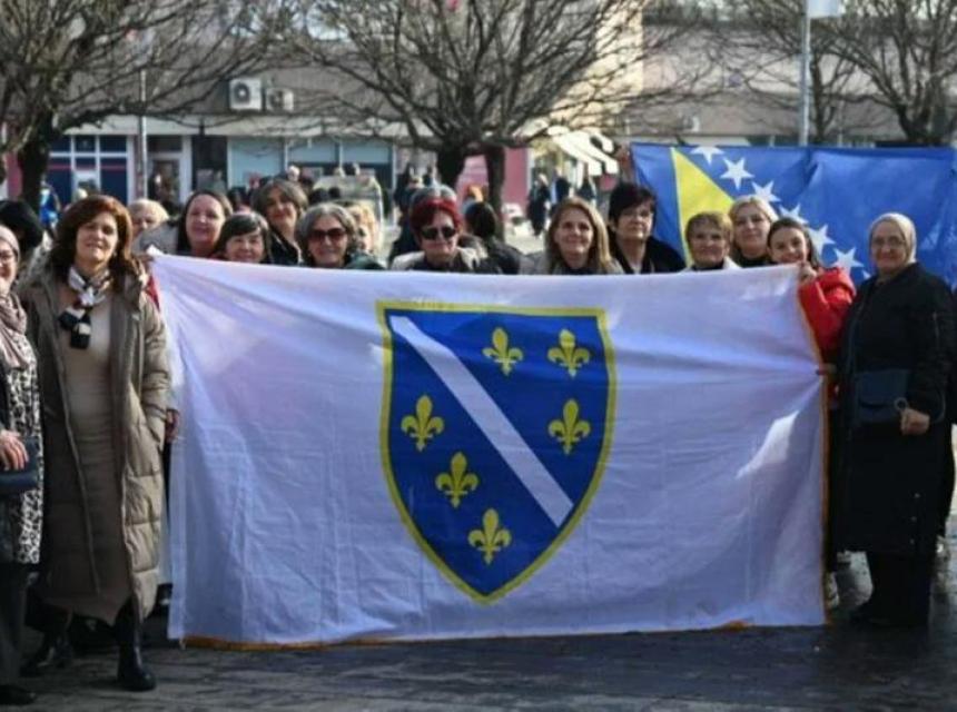 Banjalučka policija reagovala je danas na prijavu građana ovog grada jer je grupa žena u parku Petar Kočić razvila zastavu s ljiljanima.