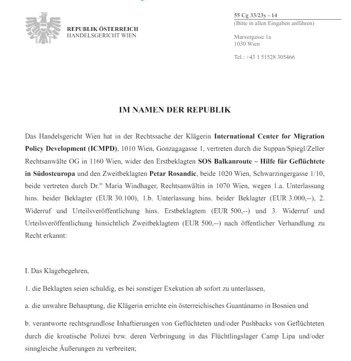 Podsjetimo, ICMPD je tužio SOS Balkanroute zbog pojma „austrijski Guantanamo“, ali je bečki Sud čak i tom pojmu dao legitimet ustvrdivši u presudi da postoji dovoljno činjenica na osnovi kojih se ilegalni zatvor na Lipi može usporediti s Guantanamom.