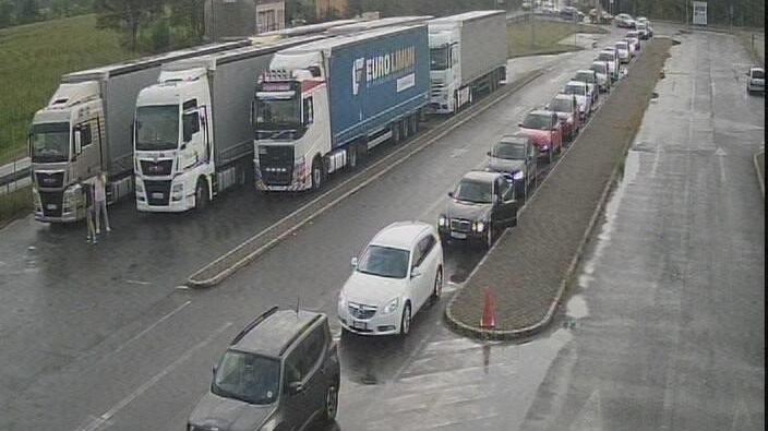 Na GP Doljani nema čekanja na našoj izlaznoj rampi, ali je tokom cijelog dana duga kolona vozila u međuprostoru (na ulazu u HR).