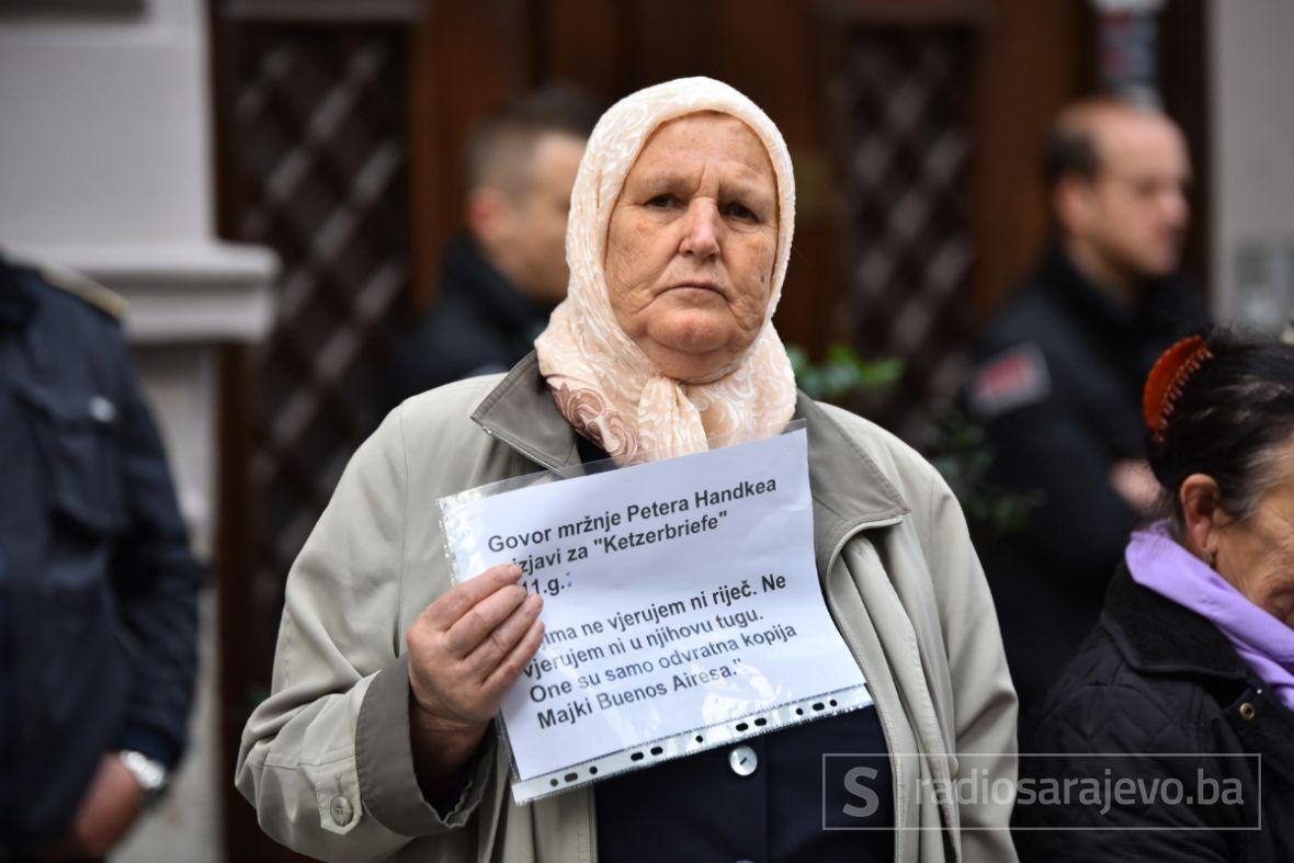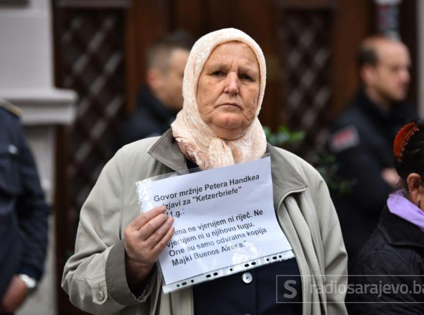 "Povod mirnog okupljanja je odluka Komiteta Kraljevske akadamije nauka da Nobelovu nagradu za književnost dodijeli Peteru Handkeu, koji je javno opravdavao i podržavao zločince i zločine počinjenje u Bosni i Hercegovini", poručuju iz Udruženja žrtava i svjedoka genocida, koje je organizator ovog okupljanja.